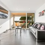 Die Gäste haben Zugang zu einer Terrasse, einem Ankleidebereich und einer Sitzecke und profitieren von einer Klimaanlage sowie von modernen Annehmlichkeiten wie einem Flachbildfernseher mit Satellitenkanälen. Dieses Apartment ist auch mit einem Sofa ausgestattet. Es gibt 1 Badezimmer mit einer getrennten Toilette und einer Dusche und einem Haartrockner und Badelaken.